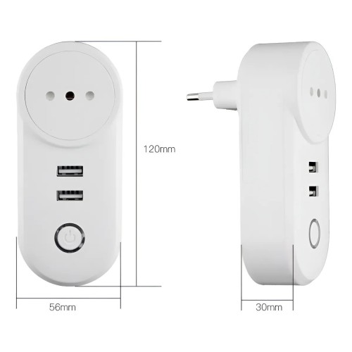 Enchufe Inteligente 3 en línea con 2 Usb Wifi Tuya 1600W