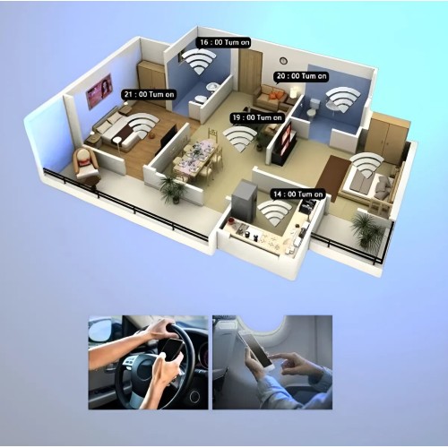 No importa dónde se encuentre, siempre que haya una red, puede controlar el estado de encendido/apagado del dispositivo a través de la aplicación de teléfono inteligente, como ventiladores, luces, calentadores de agua y fuentes, etc.